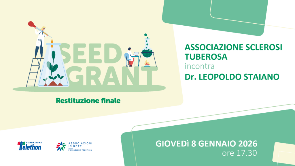 Giovedì 8 gennaio 2026 alle ore 17.30 si terrà l'incontro di restituzione finale del progetto Seed Grant del Dr. Staiano all'Associazione Sclerosi Tuberosa.