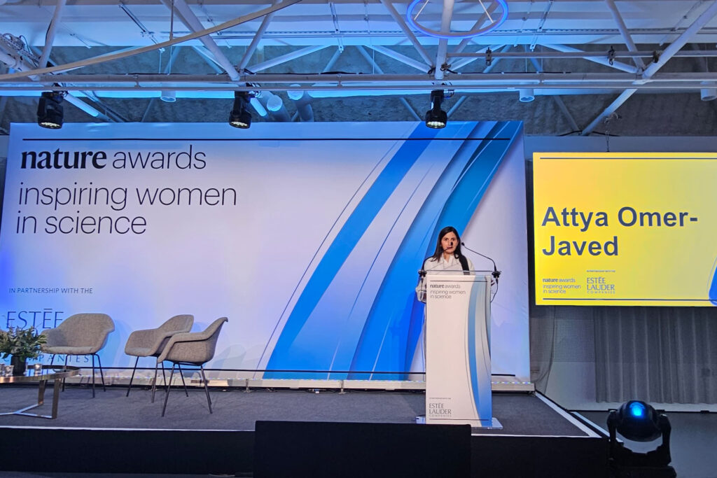 Attya Omer, ricercatrice presso l'Università Vita-Salute San Raffaele, che svolge la sua attività di ricerca presso l'Istituto San Raffaele-Telethon per la Terapia Genica (SR-TIGET), è stata premiata al Nature Inspiring Women in Science Award 2025, un riconoscimento istituito da Nature e The Estée Lauder Companies per celebrare donne che uniscono eccellenza scientifica e impegno nell’ispirare altri scienziati. Il premio, che include 5.000 dollari e visibilità globale sulle piattaforme di Nature, onora la Dr.ssa Omer per la sua ricerca nel campo della terapia genica e la sua dedizione a promuovere inclusione e diversità nella scienza.